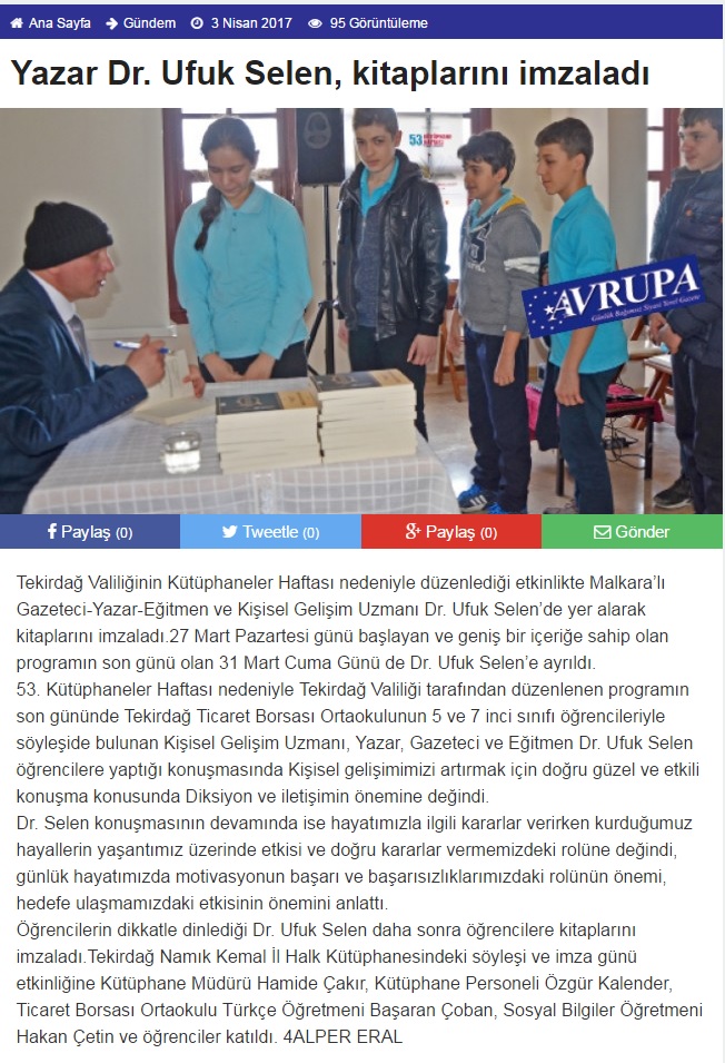 Dr. Ufuk SELEN İmza günü, Seminer ve işbirlikleri için İstanbul Ve Tekirdağ İletişim…